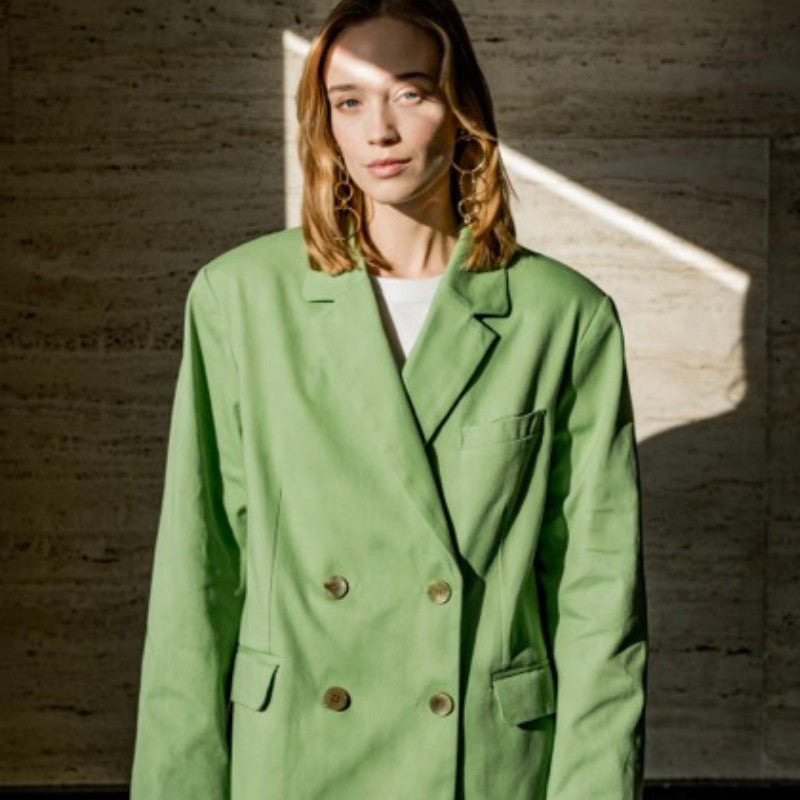 Joni hat eine lockere Passform mit einer ausgeprägten Schulterlinie und einer weichen Taille. Die Details vervollständigen Joni: Paspeltaschen, Schlitze im Rücken...