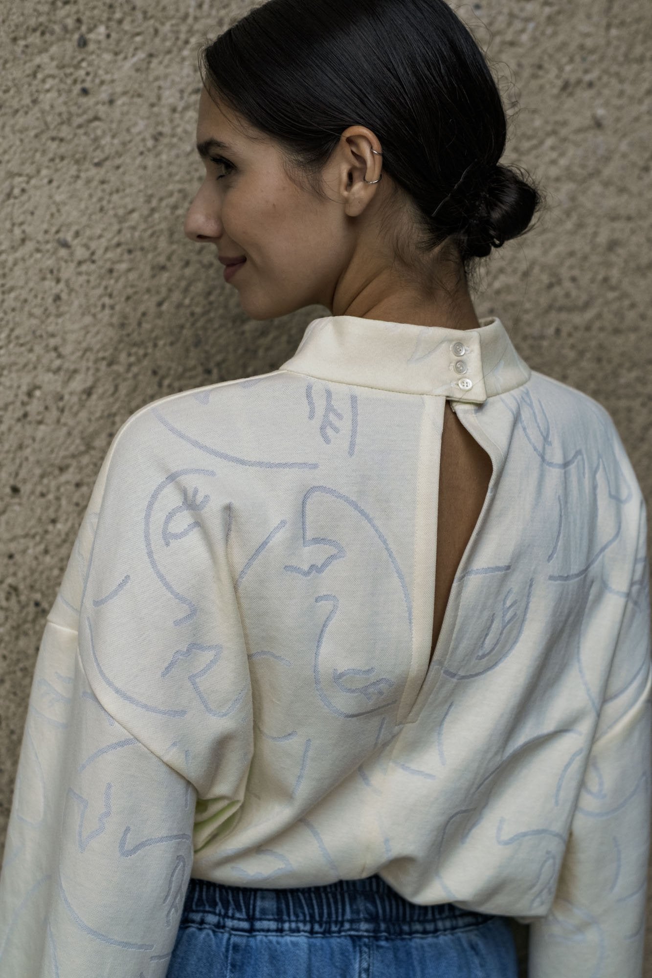 Samira ist Eleganz in ihrer einfachsten Form. Dieses fließende Oberteil hat einen Stehkragen und weite Ärmel, die für einen luftigen, anmutigen Look sorgen.