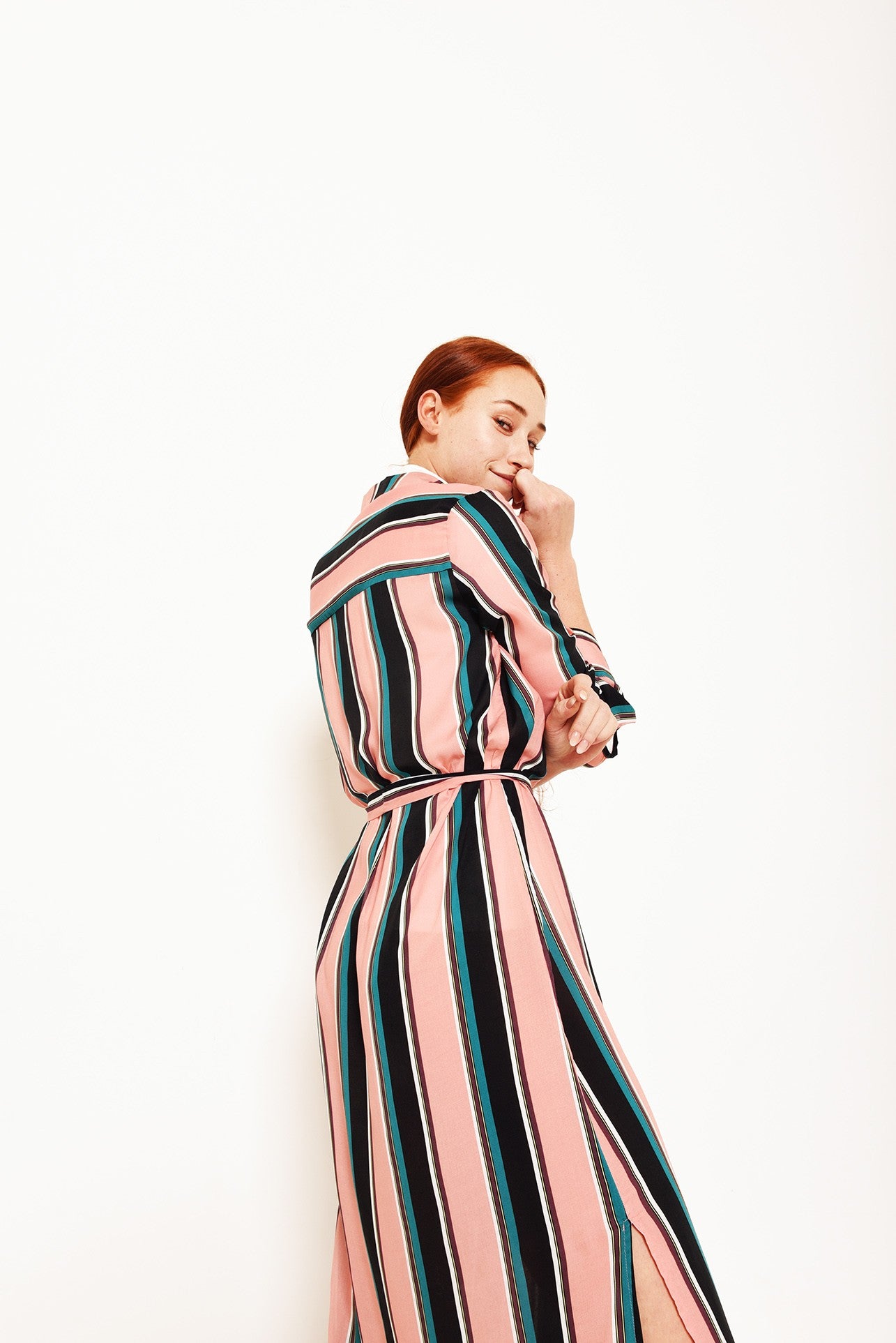 Ein weites, knöchellanges Blusenkleid. Die Seitenschlitze im Kleid Susan sorgen für einen schönen und luftigen Effekt, ein Gürtel betont noch zusätzlich die Taille.