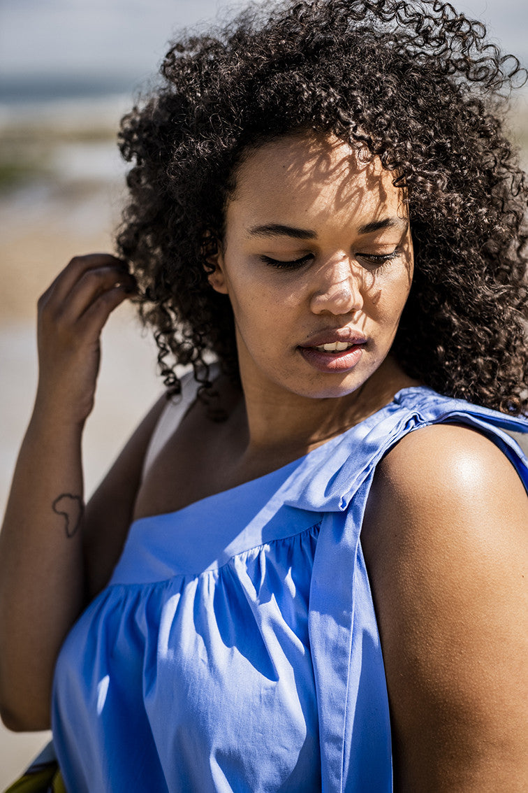 Avec Chloé, bienvenue aux températures tropicales. Soyez prêtes à recevoir des regards admiratifs quand vous porterez ce top asymétrique et ample avec une épaule nue.