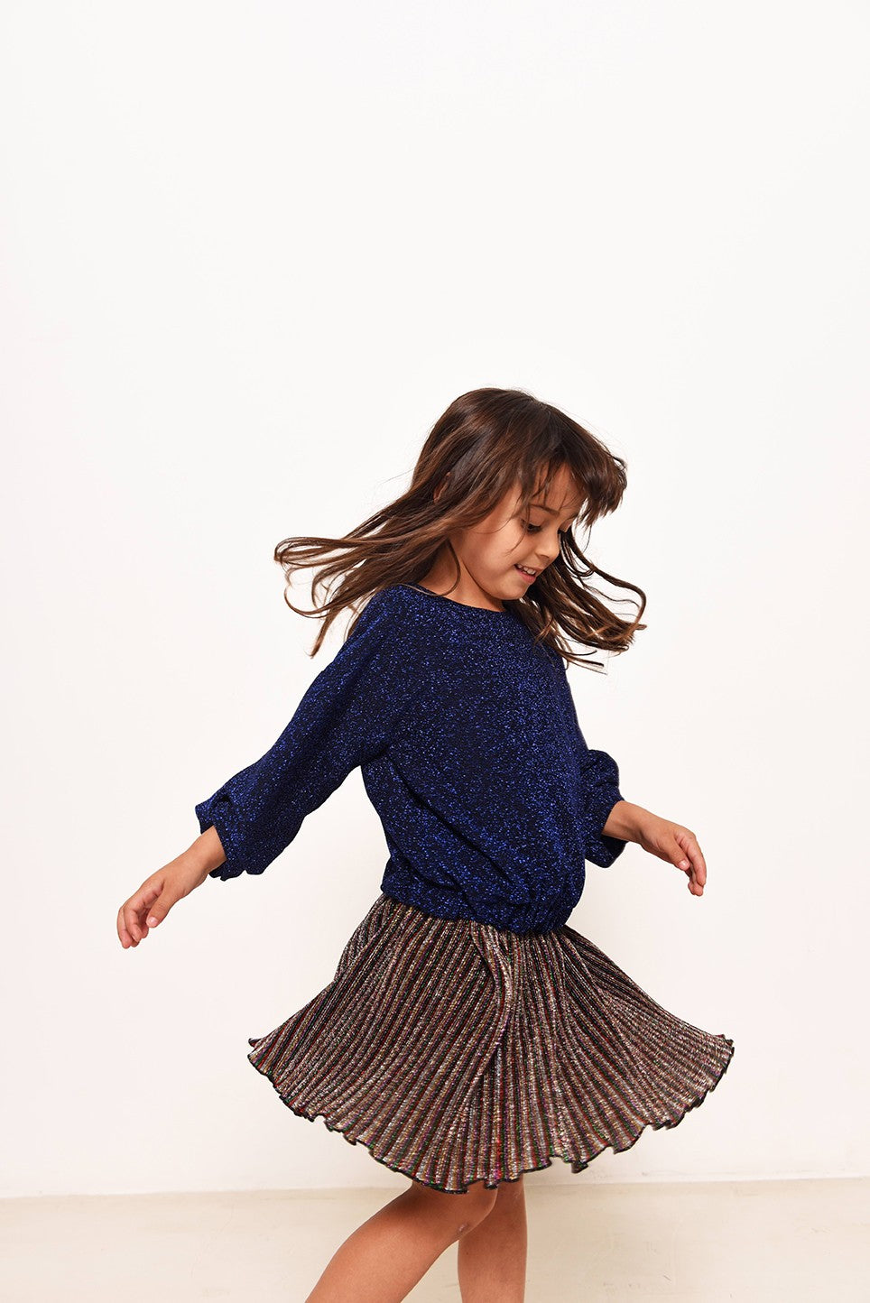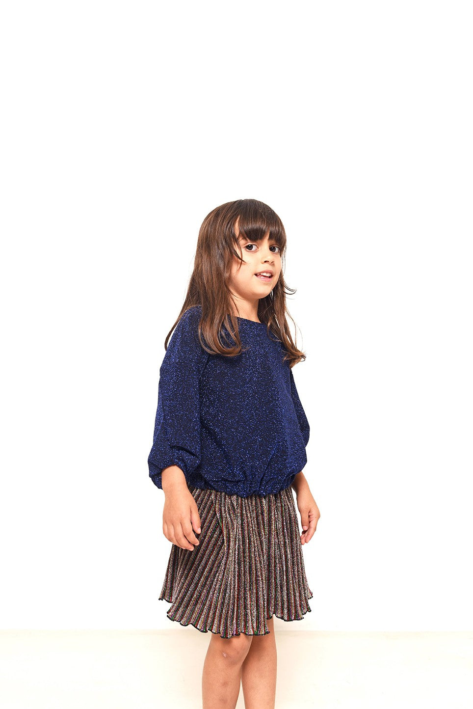 Goldie est un top ample pour fille avec épaules tombantes, ourlet élastiqué et fermeture pression.
