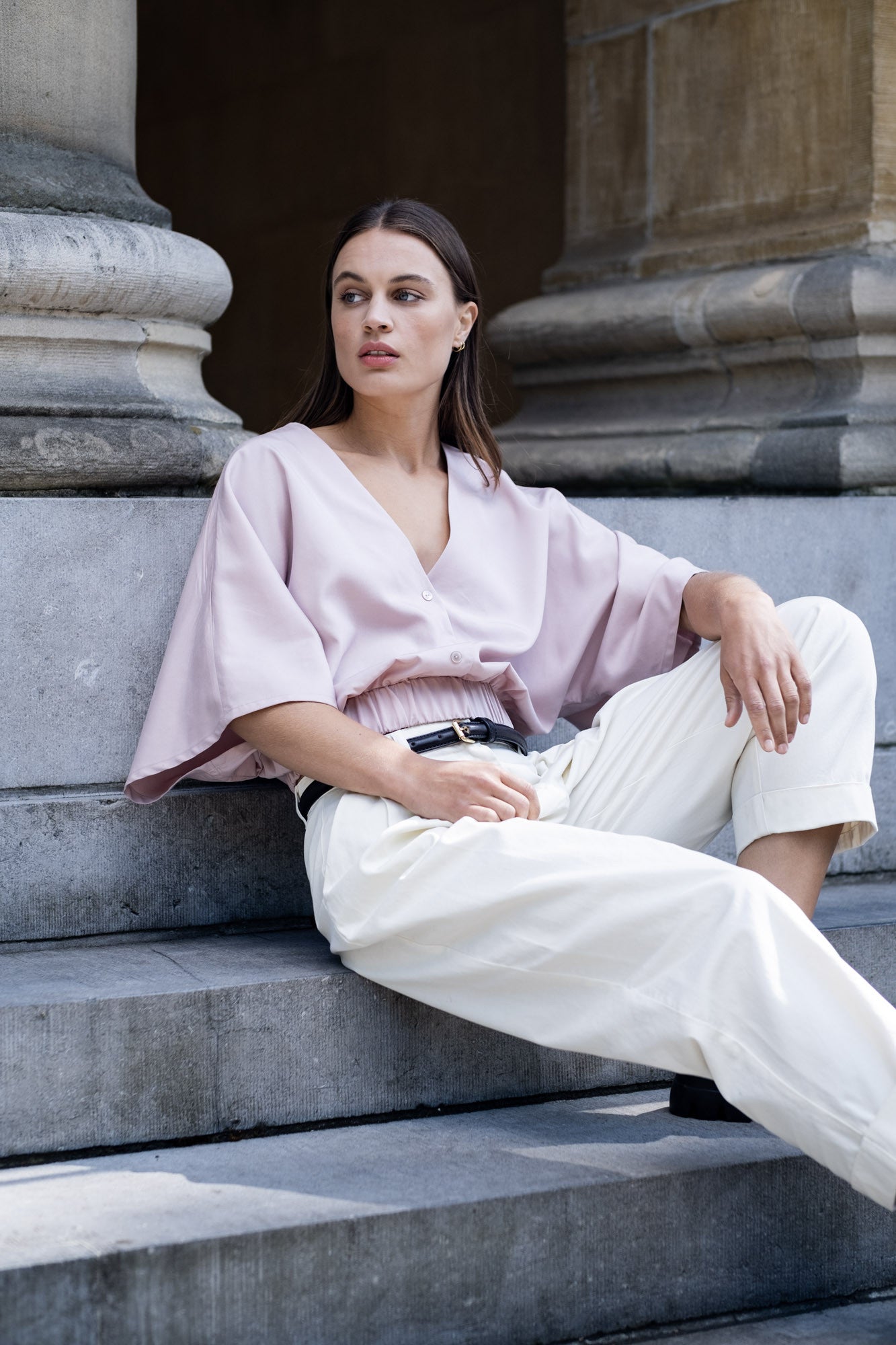 Bonjour l'été indien : cette blouse à manches courtes a un joli style décontracté et convient parfaitement aux journées de fin d'été.
