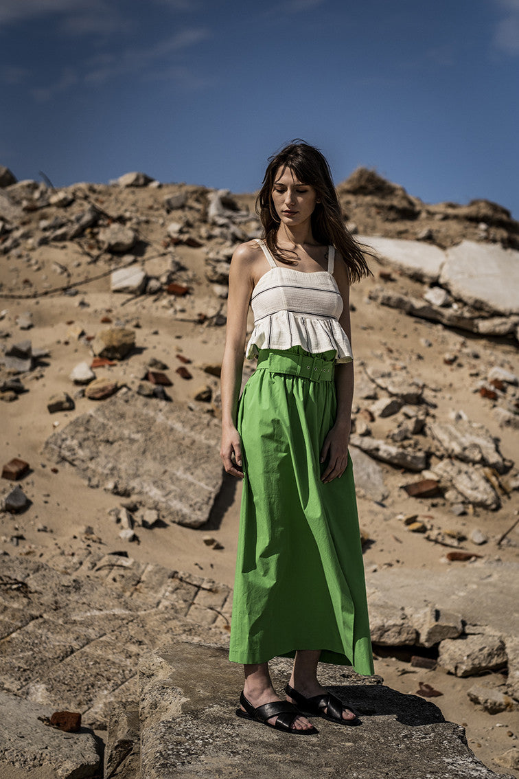Le haut court est de retour et plus raffiné que jamais. Viola a adopté la tendance « bralette », mais le volant froncé en bas le rend plus grand public.