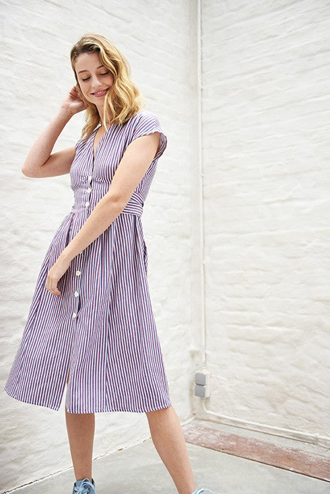 Zeg 'ns Aaa, iedereen is toch zo dol op A-lijn jurken. Joanne is een getailleerde doorknoopjurk met A-lijn rok en aangesneden mouwen.