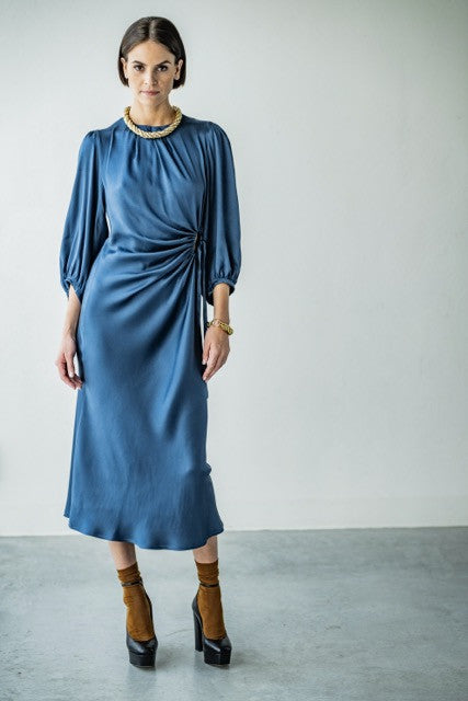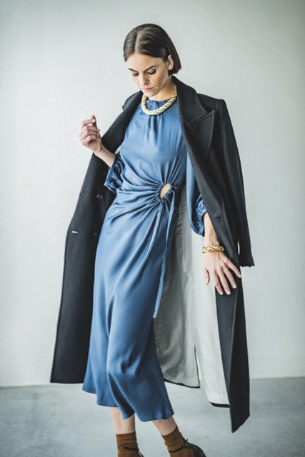 Playful with class: this ultra-feminine dress gets a cut-out with a tie in an interesting place, providing a striking detail as well as elegant draping.