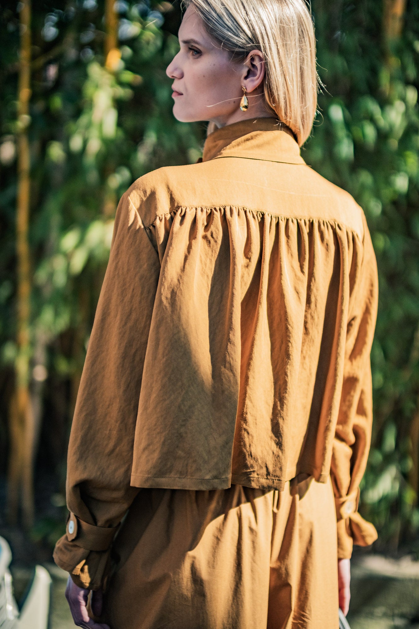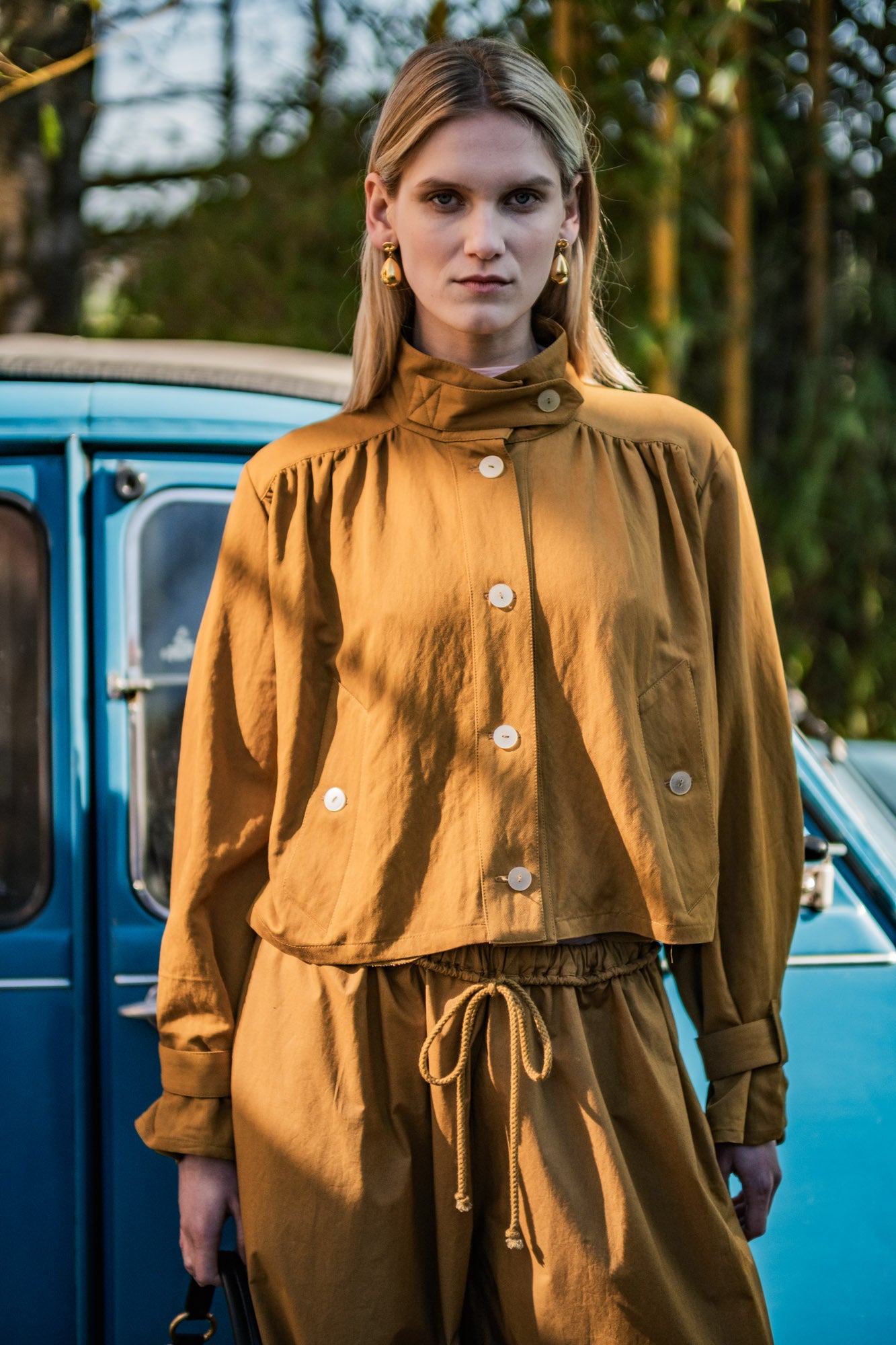 Evin is the perfect jacket for anyone who loves a bold look with a romantic touch. The stand-up collar, centre front button closure