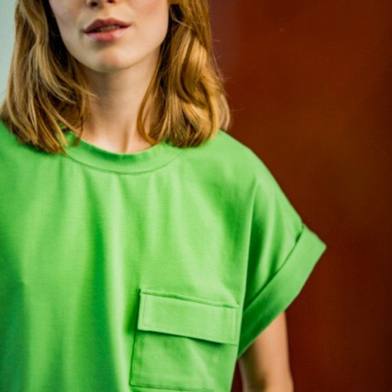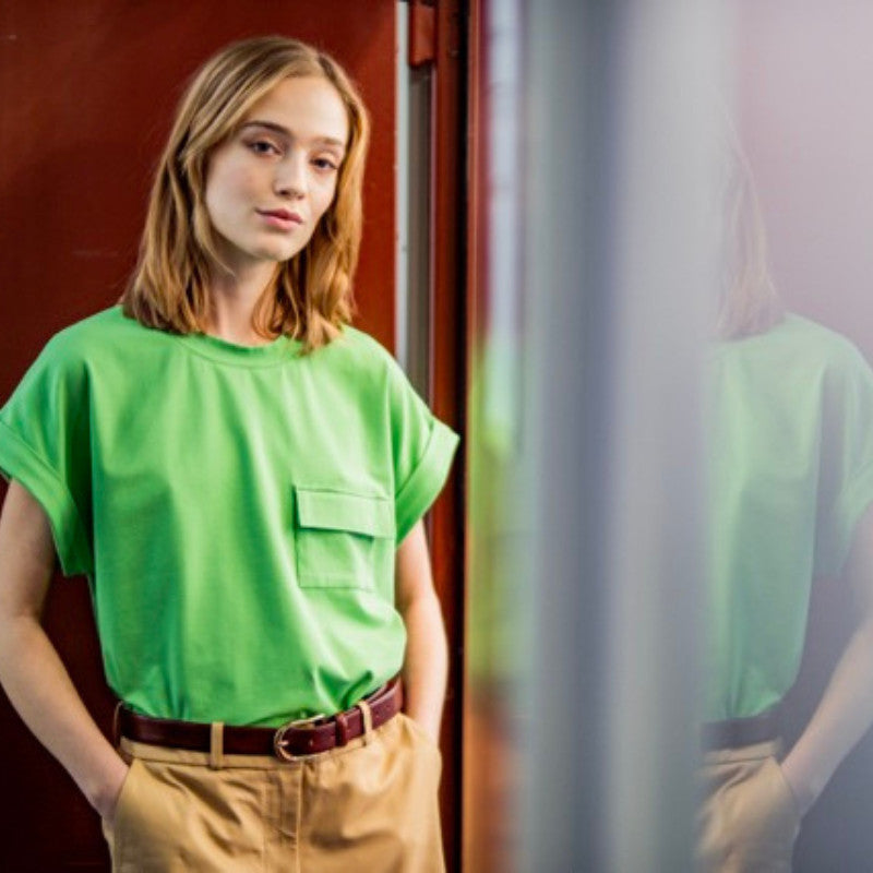 A variation on the classic T-shirt, Gina is a loose shirt with elegantly cut sleeves. Gina was given turn-back cuffs and a chest pocket as stand-out details.