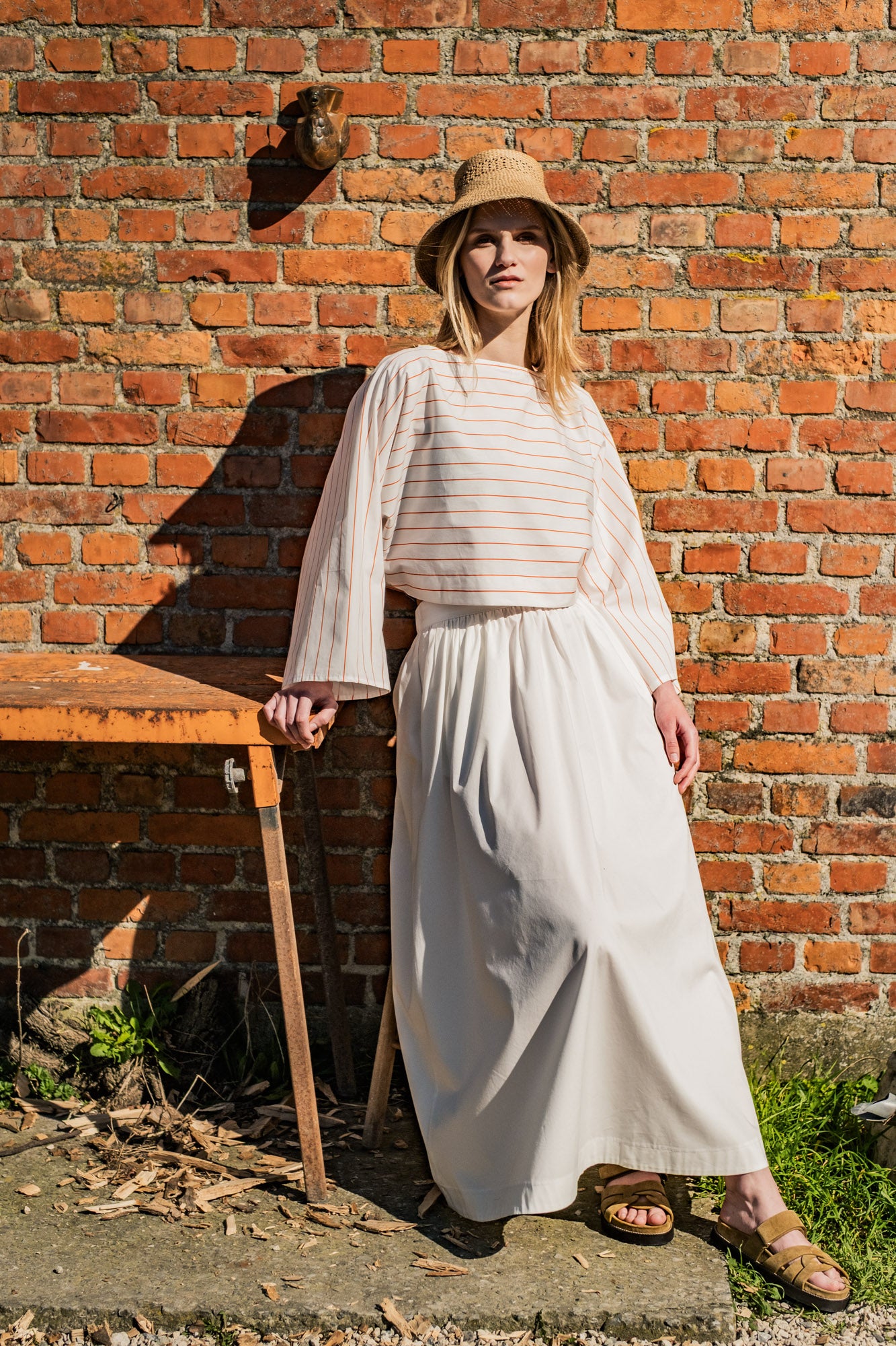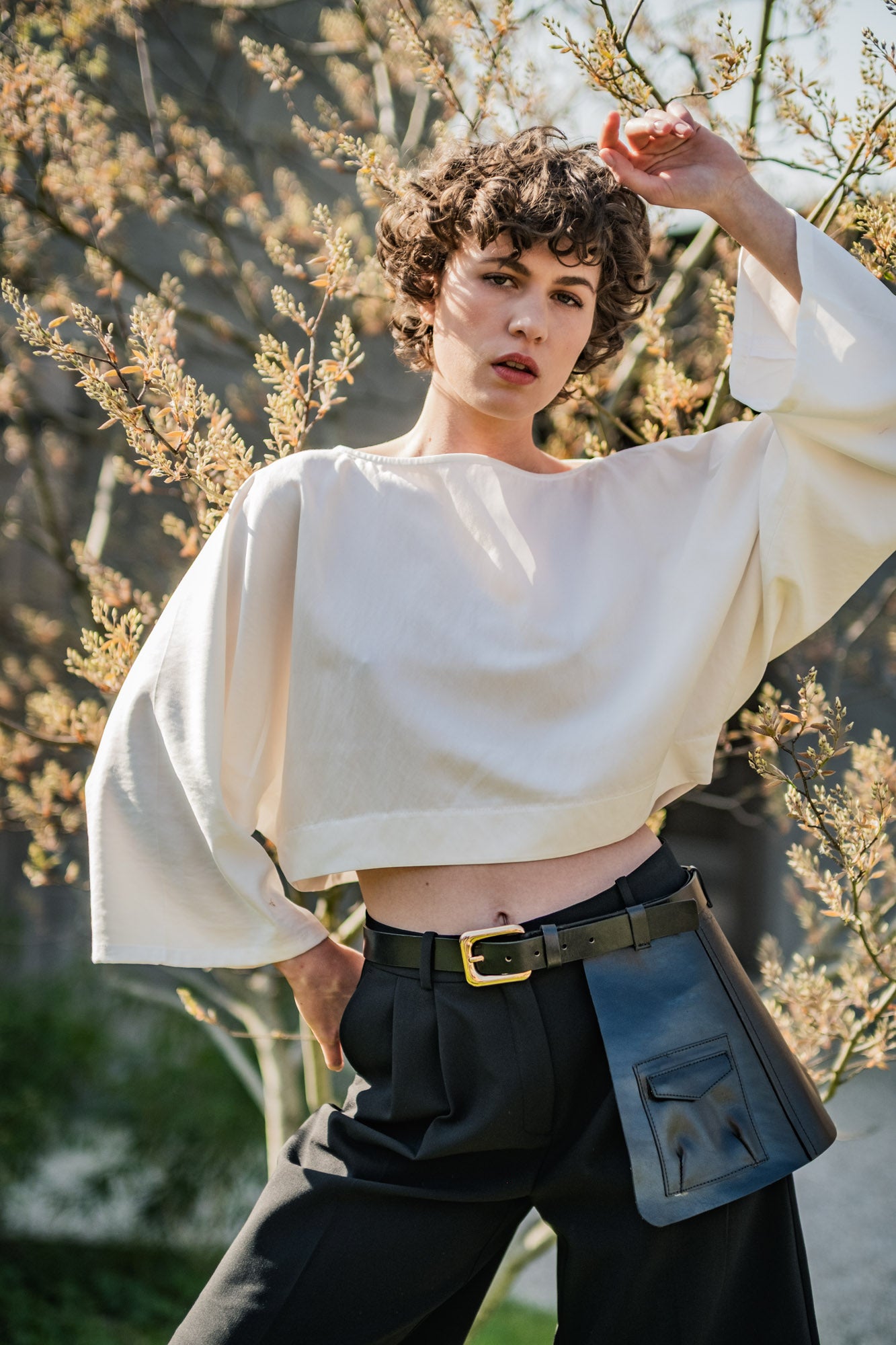 Zoey is an almost zero-waste top that proves simplicity is anything but boring. This cropped top, featuring grown-on, wide sleeves and a boat neck, finished with bias tape, has a minimalist look with a modern twist.